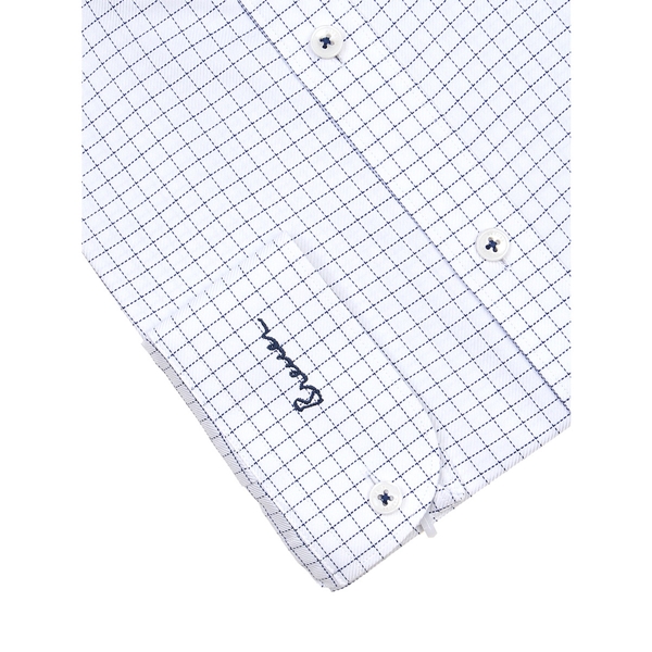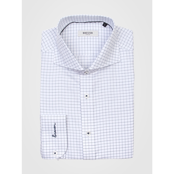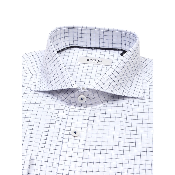 브로이어 블루 컴팩트하고 클린한 느낌을 주는 트윌 체크 패턴의 와이드카라 스타일로