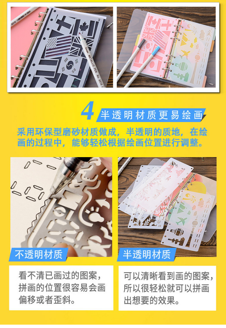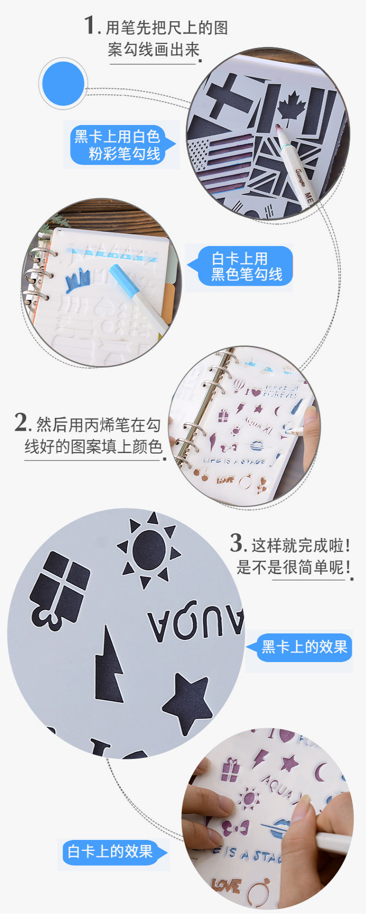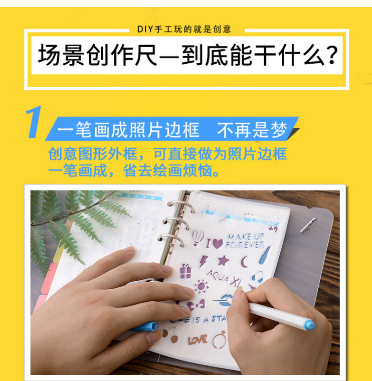 创意花边绘图尺 diy手工相册装饰黑卡纸涂鸦 手帐环保pet 花边尺