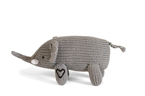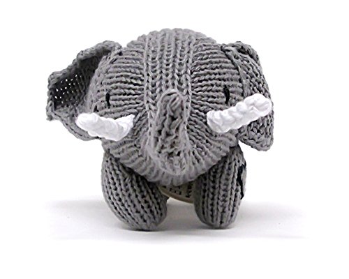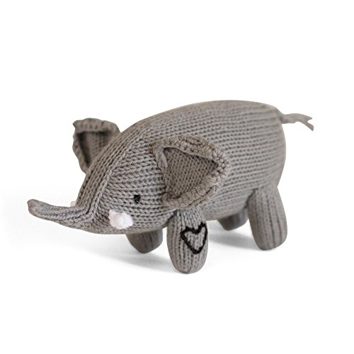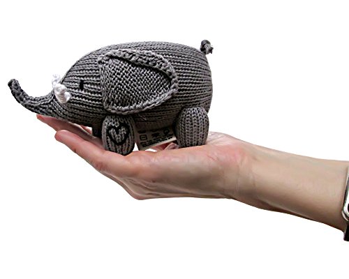 Estella Hand Knitted Elephant Rattle Baby Toy, Organic Soft Toys for Babies - Grey