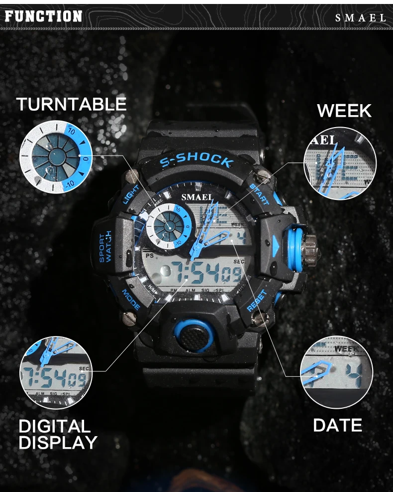 Feature:Complete Calendar,Shock Resistant,Stop Watch,LED display,Water Resistant,Diver,Back Light,Chronograph,Swim,Alarm