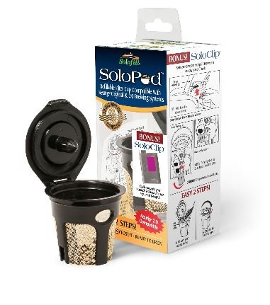 Studio : Solofill Publisher : Solofill Binding : Kitchen Product Description The perfect way to enjoy your Keurig(R) machine! The Solofill(R) SoloPod Cup allows you to fill a resusable K-cup with any kind of coffee or tea you like, and brew in your Keurig system. No more trash from disposable K-cups! The unique piano-hinge design keeps your coffee grounds secure as they brew and a microfoil filter ensures that no grounds get into your cup of coffee. Enjoy any kind of coffee without having to brew an entire pot every time! 0