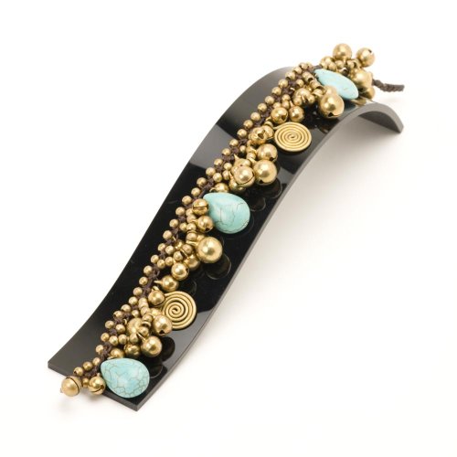 -. Feature : Handmade anklet / Made with brass bells and simulated turquoise beads. / Length 27 centimetres. / Fits ankle size up to 24 centimetres.
