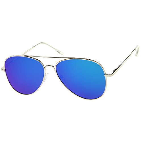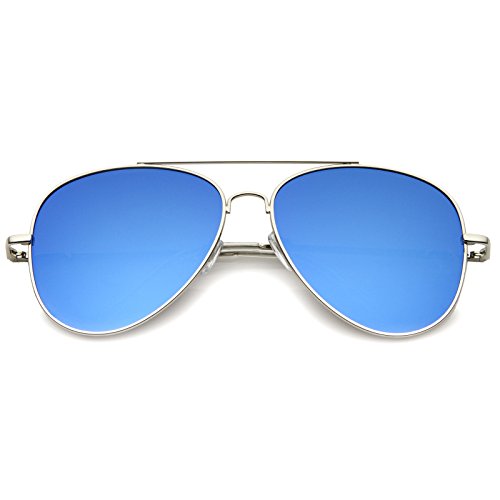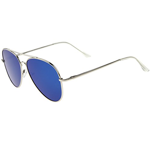 Studio : frameoptic Publisher : frameoptic Product Description A modern take on the classic style, these oversized aviator sunglasses are exquisitely designed with a thin full metal frame and teardrop-shaped flat mirror lenses in vibrant colors. A slim double nose bridge and minimal design completes this must-have sunglasses' sophisticated and luxurious style. Available in an array of eye-catching colors, these aviator sunglasses are sure to complement any look. Made with a metal based frame, English style nose pieces, metal hinges, and reflective UV400 polycarbonate lenses. Lens Height: 53 mm | Lens Width: 60 mm | Bridge: 22 mm | Frame Total: 151 mm 0