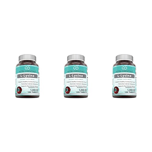 L-lysine is one of the essential amino acids that is required by the human body on a daily basis. The amino acid lysine plays many important roles in promoting health and well-being. Your body uses lysine to: · Produce important proteins, antibodies, collagen, and enzymes * · Grow new muscle and connective tissue cells * · Repair damaged tissues * · Absorb the mineral calcium * · Convert fatty acids into energy * Lysine is found in many foods, but many people need more of the amino acid. If you want to increase your intake of lysine by adding a lysine vitamin supplement to your diet, Pure Naturals lysine tablets are the ideal product to choose. Our L-Lysine tablets contain pure lysine hydrochloride (HCl), which has been shown to be easy for the body to absorb and use to the fullest. Our lysine 1000mg dosage simplifies supplementation so that you can take just one or two L-Lysine tablets and fully meet your dietary needs. Because our lysine tablets are 100% pure, potent and free of fillers and artificial colorings and sweeteners, it is the ideal choice for any of the common uses of lysine, which include: · MANAGE COLD SORES. L-Lysine Supplement May Help in Lowering the Frequency Of Outbreaks Of viral infections. It Is Also Often Recommend for Cold Sores Etc. * · SUPPORTING THE IMMUNE & RESPIRATORY SYSTEMS. * · ASSISTING HEALTHY WEIGHT MANAGEMENT & LEAN MUSCLE MASS DEVELOPMENT. The muscle-building and energy production benefits of l-lysine make it an ideal addition to a weight loss or sports nutrition dietary program * · PROMOTING BONE HEALTH. By assisting with the absorption of calcium, l-lysine may help to maintain strong bones and teeth * Get more lysine in your diet the simple way with the best lysine tablets on Amazon. Order Nutri-Essentials L-Lysine and receive your 180-count supply of L-Lysine 1000mg tablets.Feature
