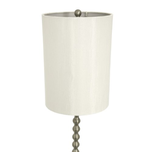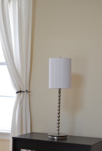 - Feature : Home Design South Beach Modern Table Lamp / Brushed Nickel Finish / Fabric Drum Shade / W: 7.5 L: 7.5 H: 26.75 / Uses 1 X 60 Watt Medium Base (A19) Type A Bulb (Not Included)