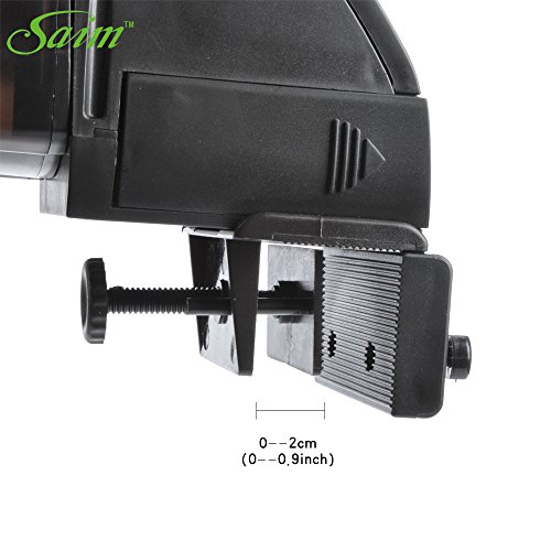 -. Feature : Great for everyday use whether you are home or away,Easy to operate and installation, manual and automatic. / LCD display programming for the maximum auto feeding time up to 5 times per day, easy to set up and use and includes easy start guide, convenient worry-free feeding for healthy fish, automatically feeds your fish while you're away / 5 different setting time with 1-3 cycles per feeding,to meet various needs. / It is ideal for most types of fish food, suitable for flakes, pellets and detritus food, can be used to feed fresh or saltwater fish, turtles, newts and frogs, ideal fish feeder for terrariums and aquariums.