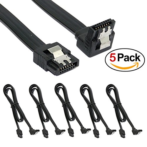 (5 x SATA 3 Data Cable) SATA III (SATA 3) cable black (45cm) with Locking Latch straight to Right Angle 90 Degree | compatible up to S-ATA/600 | 1,5GBs/3GBs/6GBs | S-ATA Cable I and Sata II