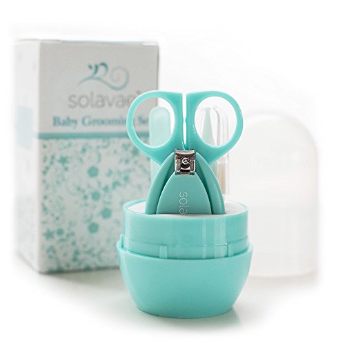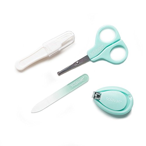 Studio : Bixore Publisher : Bixore Binding : Baby Product Product Description Say Goodbye to Cheap Baby Grooming Sets! We've all seen standard baby grooming kits made from cheap materials that either shred baby's nails, cut too close to the skin, or don't work at all! Cutting a baby or toddler's nails can be scary and downright difficult with their tiny toes and fingers - not to mention the squirming! How about trying to wrangle those boogies out of your little one's nose? Worry no more! This Baby Grooming Kit has been custom-designed for ultimate comfort, precision grooming, and ease for parents. The tools are stored tightly in a convenient, beautiful case and packaged in a designer box. The teal color is perfect for a boy or girl and right on trend with what parents are looking for, so this kit is also a wonderful gift for a new or experienced parent! Here's why you'll love the SolavaeTM Baby Grooming Set as much as our many, happy customers: - No more cheap, metal nail files or flimsy emery boards. Say hello to our double-sided Premium Glass Nail File. If you have never used a glass nail file, you will be thrilled with how easily this nail file works! - Our nail clippers have been specially designed with a rounded handle to allow for easy and precise maneuvering around little fingers and toes making the trimming process quick and painless. -The Solavae scissors are perfect for soft, baby nails that are difficult to cut. Easily remove boogers with the rounded, soft-tipped nose tweezer. This tool is a great alternative to nose suctions that retain mold and bacteria and upset infants when used. We stand behind the quality of our products and offer a 1-year replacement guarantee from normal manufacturer defects. Click the 'Add to Cart' button now and see for yourself why parents and grandparents rave about the SolavaeTM Baby Grooming Kit! SolavaeTM is a brand of Bixore, LLP and is sold exclusively by Bixore. 0