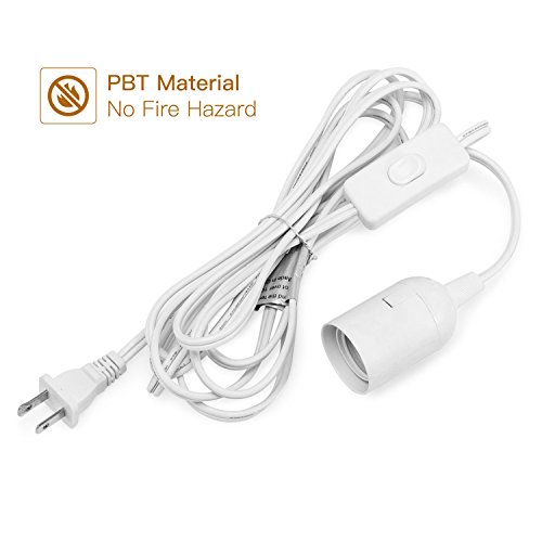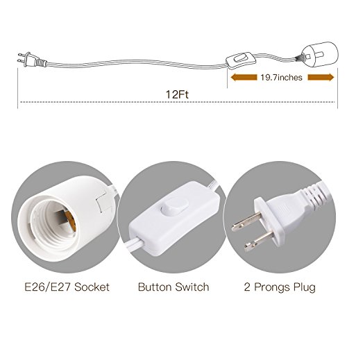 JACKYLED UL Extension Hanging Lantern Cord Cable 12Ft 660W with E26 E27 Socket On/ Off Button + Hooks + 2-Prong AC Power Plugs Pendant Lighting for Kitchen Bedroom Plant Growth light