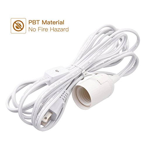 JACKYLED Extension Hanging Lantern Cord Cable 12Ft with E26/E27 Socket, UL Listed Gear Switch + Hooks + 2-Prong US AC Power Plugs - Pendant Lighting Bulb Lamp in Kitchen, Bedroom, Bathroom