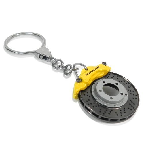 -. Feature : •Reproduction of the Porsche brake disc and caliper. / •This die-cast metal 1-1/4 inches miniature brake disc keychain features a rotor that actually rotates within the brake caliper. / •The rotor surfaces are fitted with photo-etched stainless steel plates that have been manually brushed to simulate hairline braking marks. / •Omega ring for keys. / •Brand New official Porsche product.