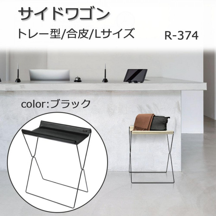 | 合皮のトレー型のサイドワゴンです。奥行きが21cmあり、A4サイズがそのままおけます。シンプルなデザインなので、ホテルのロビーなどにぴったりなサイズです。 |