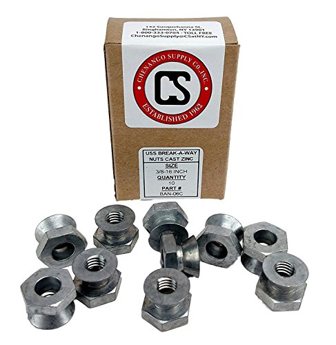 3/8-16 Zinc Breakaway Nuts (10 pcs) Break-away, break-a-way Security Nuts USS Thread