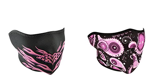 -. Feature : This Product is a 'Bundle' of 2 Neoprene Face Mask Items identified as a 'Pink Flames' and a 'Purple Paisley' / The First Facemask Item is the ZanHeadgear 'Pink Flames' Half Face Neoprene Face Mask / The Second Facemask Item is the ZanHeadgear 'Purple Paisley', Highway Honey, Half Face Neoprene Face Mask with Rhinestones / Face Masks / Ski Mask Items are made of Durable, Naturally Warm & Water Resistant Neoprene Face Mask Material / Face Mask Sizes are adjustable, by up to 2 inches, using the Hook & Loop closure, located at the back of the head