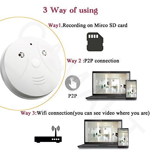 -. Title : Camakt WiFi Smoke Detector Camera HD 1080P Mini Nanny Cam Motion Detection Activated Video Recording Security Cameras for IOS Android PC Remote View