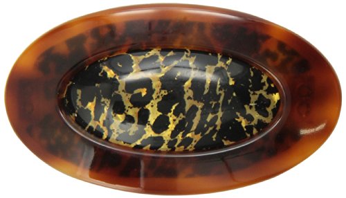 Caravan Large Oval Handmade Soft Animal Insert In Tortoise Shell Border Automatic Barrette