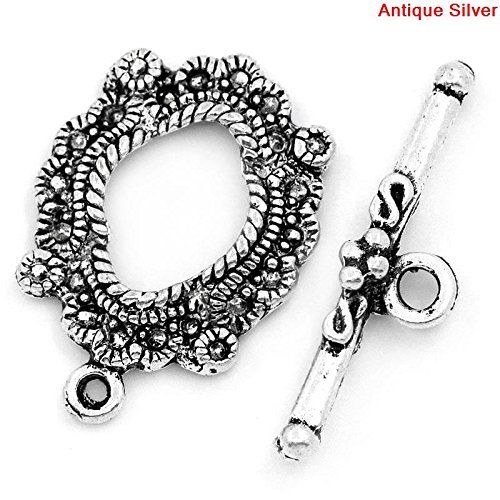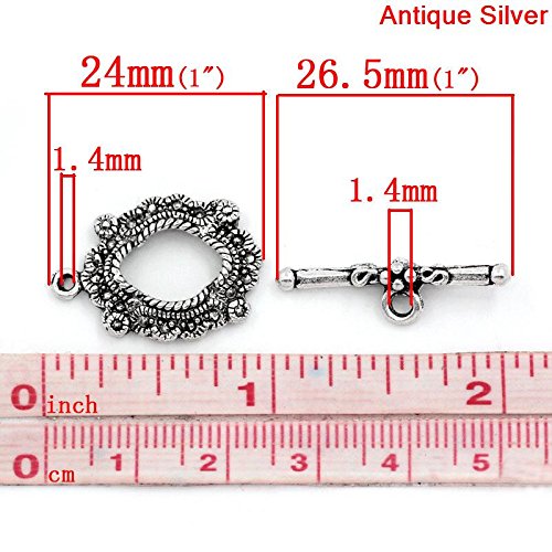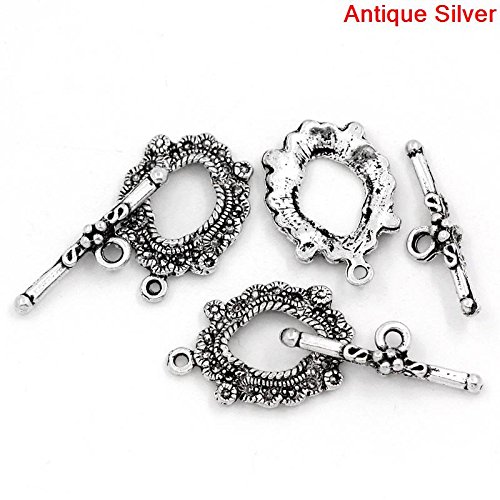 30 Sets Silver Tone Bracelet Toggle Clasps (Antique Flower) - Findings, DIY Crafts, Jewelry Making