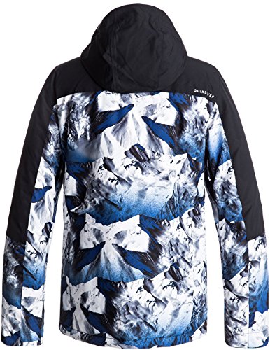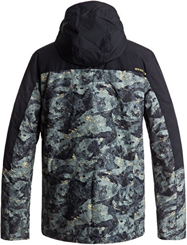 Studio : Quiksilver Young Men's Snow Publisher : Quiksilver Young Men's Snow Binding : Apparel Product Description Snow jacket for men. Features include: waterproofing: 10k Quiksilver dry flight technology, fabric: polyester plain weave fabric, fit: modern, insulation: warm flight [fill weight: 100g body, 80g sleeves, 60g hood], lining: taffeta and brushed tricot lining and features: key clip. 0