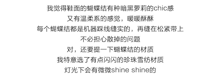 - 颜色分类: 黑色(蝴蝶结) 米白色(蝴蝶结) 棕色(蝴蝶结) 黑色(V口) 棕色(V口) 杏色(V口)
