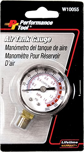 Performance Tool 0-200 PSI Air Gauge for Air Tank Accessory W10055