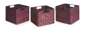 -. Title : Set of 3 Small Wired Rattan Baskets by Winsome