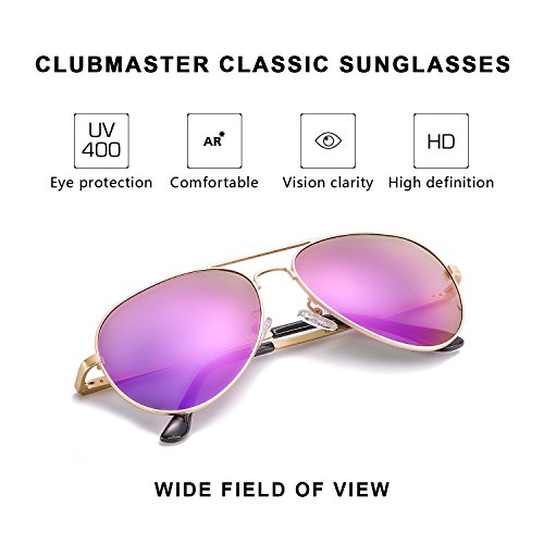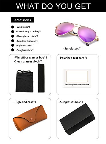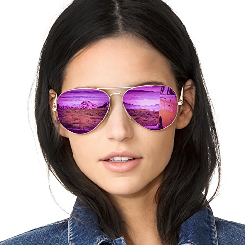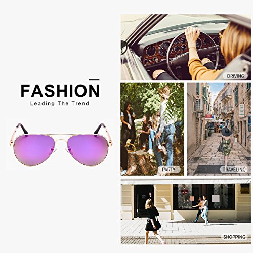 Mirrored Aviator Sunglasses Polarized for Women with Metal Frame-100% UV Protection