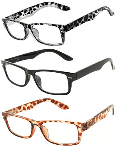 - Retro Narrow Rectangular Clear Lens Eyeglasses 3 Pack – Brown, Black, Leopard