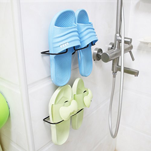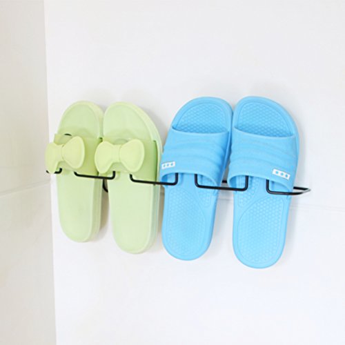 - Color: Coffee. - Material: Iron. - Size: Approx. 26 x 8.5 x 10.5 cm / 10.2 x 3.3 x 4.1 inch (L x W x H). - Stylish and sturdy construction. - Space saving and easy to move. - Keep your shoes well organized. - Adhesive pad installation, wall mounted without any drilling or tool, no damage to the wall. - Suitable for smooth, non-porous surface and bathroom or shower room locations, to keep shoes/slippers dry.