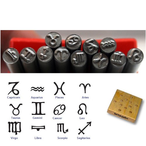 Metal Punch Stamps, 12 pcs Set, 5.0mm Zodiac Symbols