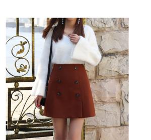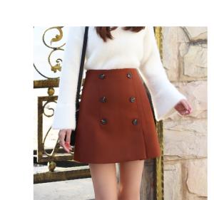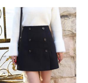 上品なAラインシルエットにデザインボタンが可愛いミニ丈ウールスカート☆