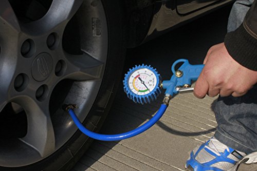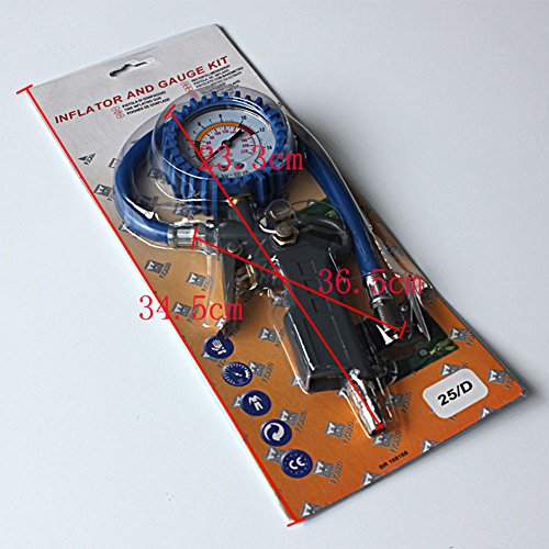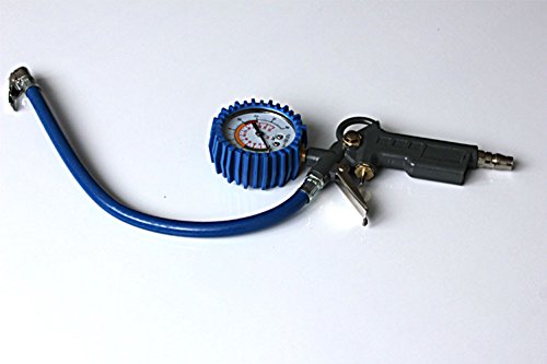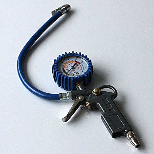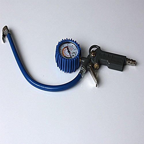 - Feature : Pistol-grip tire inflator with easy-to-read dial gauge, clip-on chuck design. / With air release button, for reducing pressure in over-inflated tires. / Flexible hose for more easy and convenient use. / Inlet pressure sensor and electronic components. / Measurement range: 0-220psi,0-16bar.