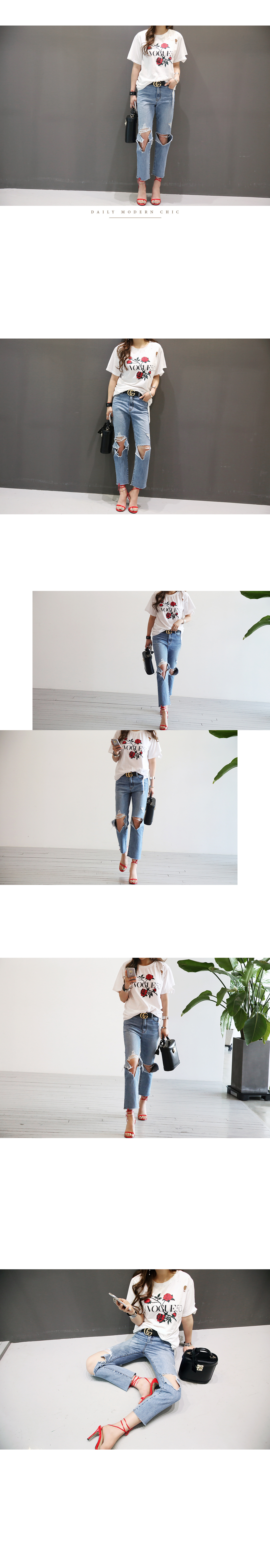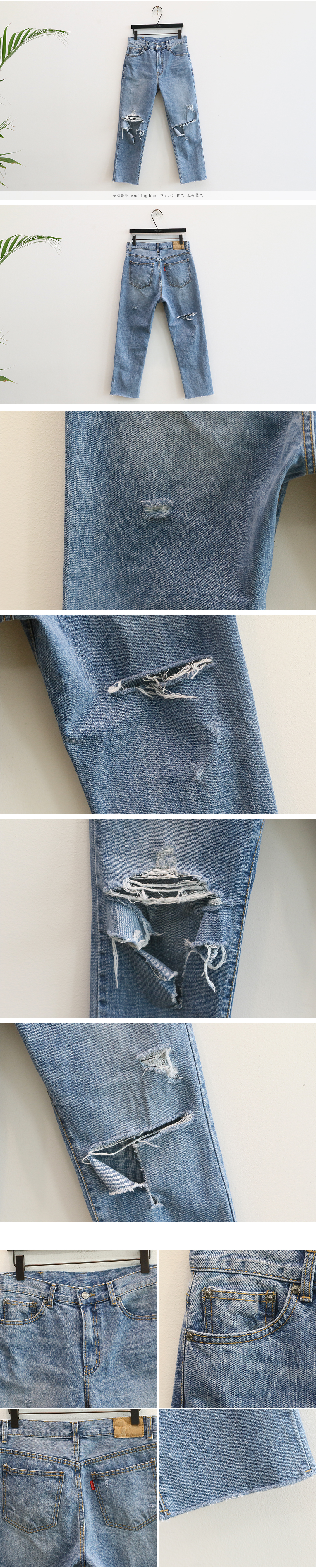 데일리로 즐기기 좋은 데님팬츠 소개해드릴께요.자연스럽게 워싱된 빈티지한 중청컬러가 눈길을 사로잡는 아이템인데요.양쪽 무릎부분에 과감하게 컷팅 디테일을 주고 밑단에 올풀림을 주어더욱 캐주얼하고 빈티지한 멋을 느끼실 수 있습니다.