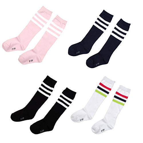 Natuworld Pack of 4 Children Girls Boys Toddlers Cotton Thicken Knee Long Soccer Socks Team Socks for Kids