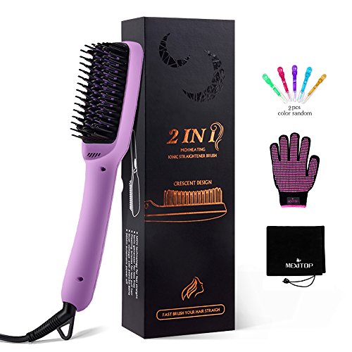 2017 New Ergonomic Innovation Comb: Especially designed crescent shape perfect fit human head form. It feels like getting a cool massage when you combing your hair, more smooth and effective stylish Making up. Newly adopted LEAD-IN teeth, the hair straightener brush can get into and brush your hair much easier and won't miss up any piece for your hair straightening.