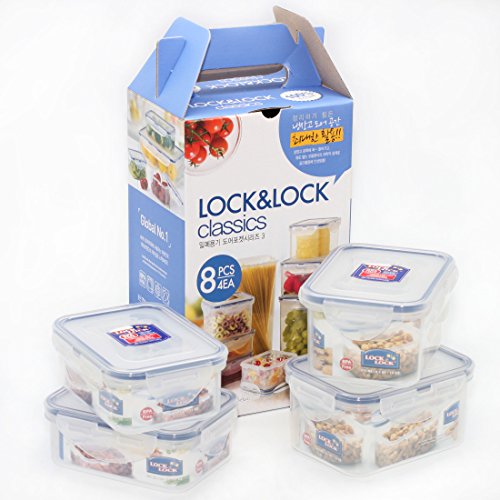 LocknLock Food Containers, 8 PCS, 4 Containers Set with Leak Proof Locking Lid