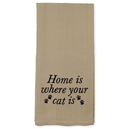 Beige Home is Where Your Cat Is Paw Prints 19 x 28 Inch Embroidered Cotton Waffle Dish Towel