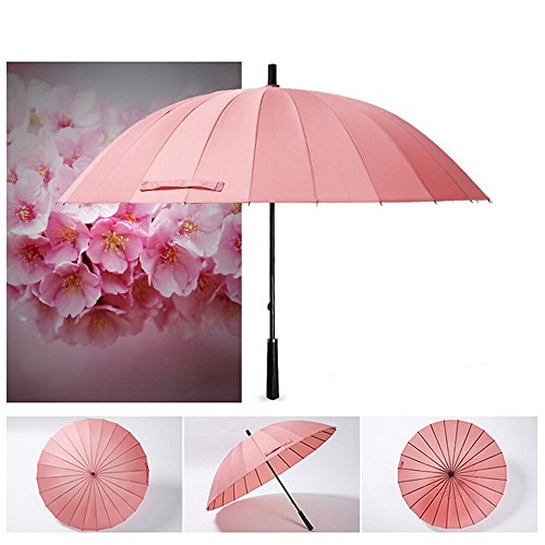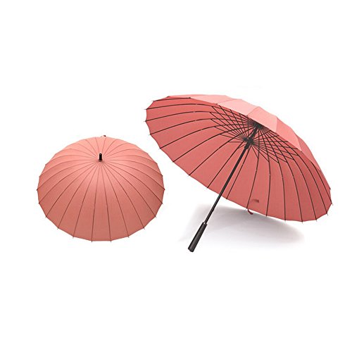 ■【本体サイズ】収納時:(約)直径6*長さ86cm; 使用時:(約)親骨:65cm; 直径:115cm; 傘の長さ:86cm; 傘の重さ:650g。 美しい24本の骨は柔軟で丈夫なグラスファイバーを採用し、 従来の8本骨の3倍の24本骨にすることでかつてない高強度と耐久性を実現。また、24本骨傘は8本骨傘に比べて円形に近い形状になるので、見た目も美しく、男女問わず使用できる傘です。