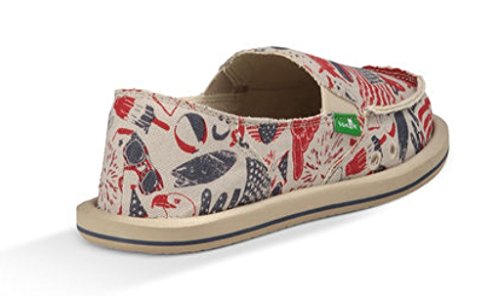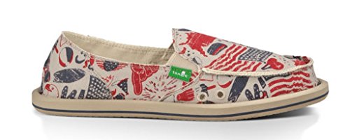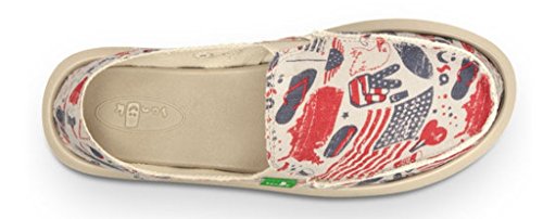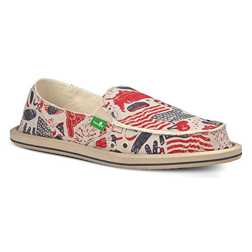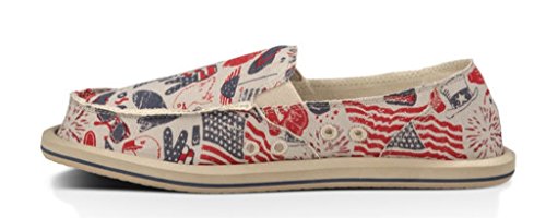 -. Binding : Apparel -. Brand : Sanuk -. Color : Multicoloured -. Department : womens -. Feature : Sanuk Women's Shoes / Donna Patriot Flip Flops / Medium Width / Very Comfortable! -. Label : Deckers -. Manufacturer : Deckers -. MPN : SWF10961 AICN -. PackageQuantity : 1 -. PartNumber : SWF10961 AICN -. ProductGroup : Shoes -. ProductTypeName : SHOES -. Publisher : Deckers -. Studio : Deckers -. Title : Sanuk Women's Donna Patriot Sandals American Icon Sing an ode to Donna, the most comfortable slip on in town from Sanuk.Multi-color woven herringbone fabric upper in a casual slip on style, with a stitched and seamed moc style round toe Stitching and matching fabric overlay accents and flared tongueSide elastic goring panels forSoft canvas fabric lining, cushioned insoleShock absorbing flexible midsoleSanuk Happy U logo printed traction rubber outsole