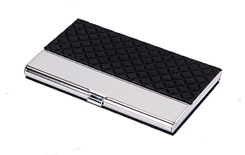 Flourand(TM) PU Leather And Stainless Steel Business Card Case Holder With Mini Gift (Black(Grid))