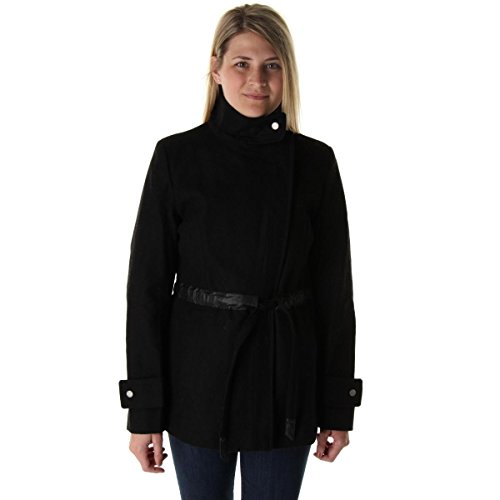 Title : Nine West Womens Wool Blend Pleather Trim Coat Black L