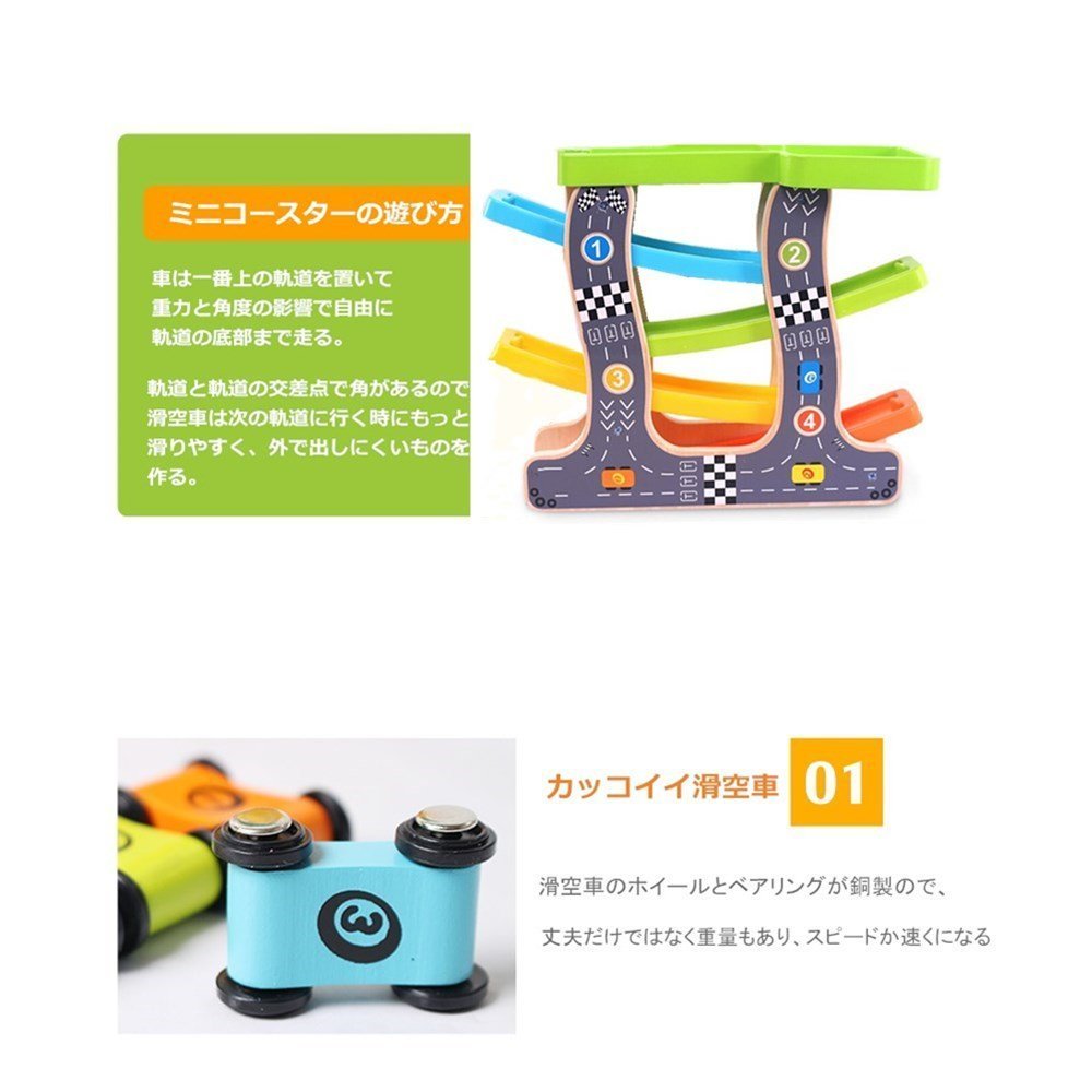 【知育玩具】リズムがいいので車を転落する時に、音がはっきり出て子供の目を引く、遊びを通じ自然と集中力・創造力・好奇心などが楽しく身に付く。カラフルなので想像力も刺激する
