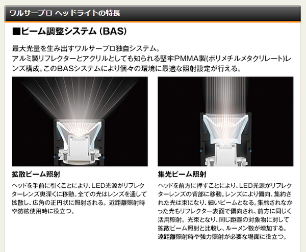 140mの照射距離などウォーキングから車両点検までアクティブ活用できる。