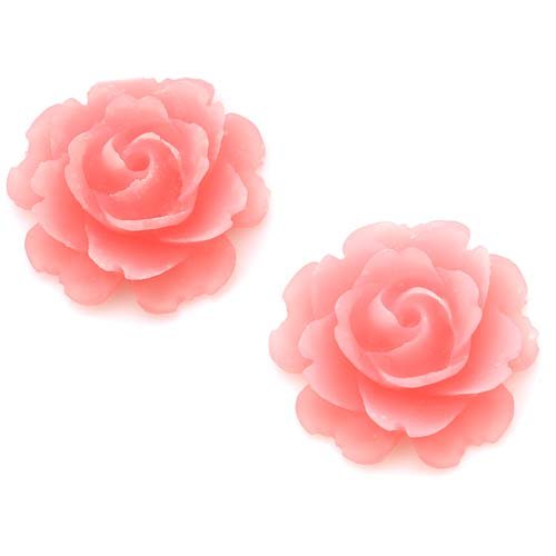 Beadaholique Lucite Flower Cabochons 2-Piece Blooming Rose Beads 23mm Matte Transparent Pink