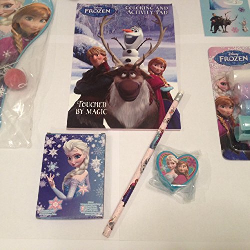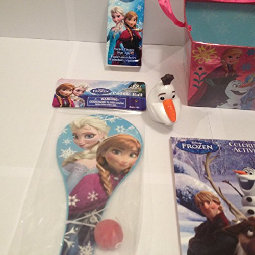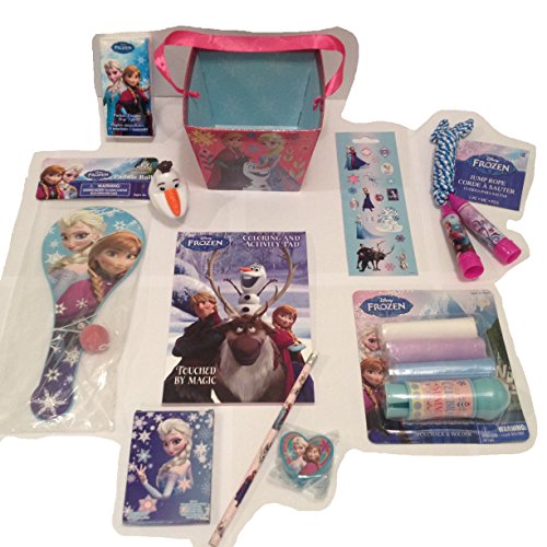 -. Feature : This bundle of 11 items include a 4" Tall Gift Box filled with the following items: / Sidewalk Chalk, Jump Rope, Paddleball, Coloring Activity Pad, Crayons, Pencil, Pencil Sharpener, Sticker Sheet, Pack of Pocket Tissues, and Olaf Treat Container / Note: Colors & Characters on individual items may vary