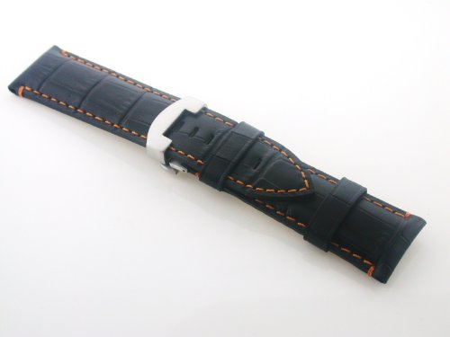 -. Title : 22mm Cow Leather Deployment Strap Band for Panerai Bk #18 OS