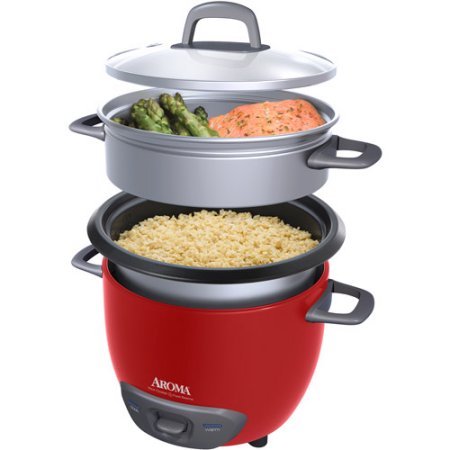 Studio : Aroma Publisher : Aroma Product Description Enjoy easy home cooking with the Aroma 14-Cup Rice Cooker. You can use it to prepare four to 14 cups of restaurant-quality rice at the press of a button. The Aroma 14-Cup Rice Cooker automatically switches to "Keep-Warm" setting once the rice has cooked to perfection. It includes a steam tray to cook meats and vegetables even as the rice gets cooked below. The non-stick rice cooker takes advantage of efficient heat transfer using steam to lock in both flavor and nutrition. The Aroma Rice Cooker and Food Steamer is remarkably easy to use and helps you cook a variety of things including soups, stews, salads, chili and more. Also the rice cooker steamer integrates a nonstick removable pot for quick and easy cleanup in the dishwasher. 0
