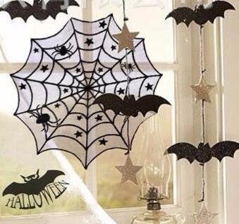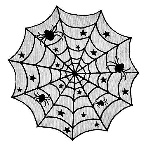 Halloween Lace Spider Round Web Tablecloth Fireplace Table Topper Covers Decor,40.8 Inch