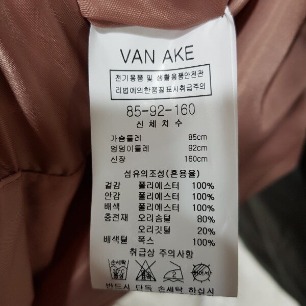 반에이크 덕다운 폭스카라점퍼 입니다.표준사이즈 가슴둘레 88엉덩이둘레 94신장 165브랜드 사이즈실측사이즈55사이즈가슴단면53cm총기장94cm66사이즈가슴단면 56cm총기장98cm실측사이즈는 재는 위치에 따라 1-2CM 정도 차이가 날수 있으니 구매시 참고 부탁드립니다^^