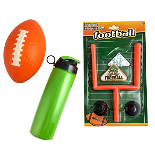 Studio : Generic Publisher : Generic Binding : Toy Product Description You scored a touchdown finding this football themed basket. Whether your looking for a unique gift for a birthday themed sports party, or maybe you send to send a get well wish. This basket is sure to delight the football fan! Included is: Finger Football Game to play alone or with friends, a Sport Drink Container, a Small Foam Football for tossing around. Recommended for Ages 5 and up. 0