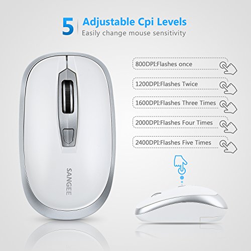 -. Title : Wireless Mouse,SANGEE 2.4G Wireless Portable Mobile Mouse Optical Mice With Nano USB Receiver,5 DPI Levels £¨800, 1200,1600,2000 2400)4 Buttons for Notebook,PC,Laptop,Computer,Macbook